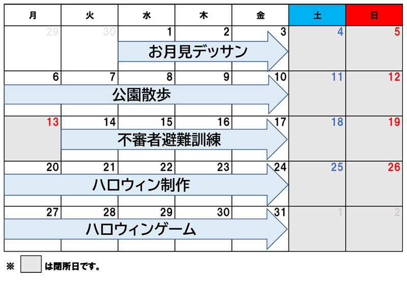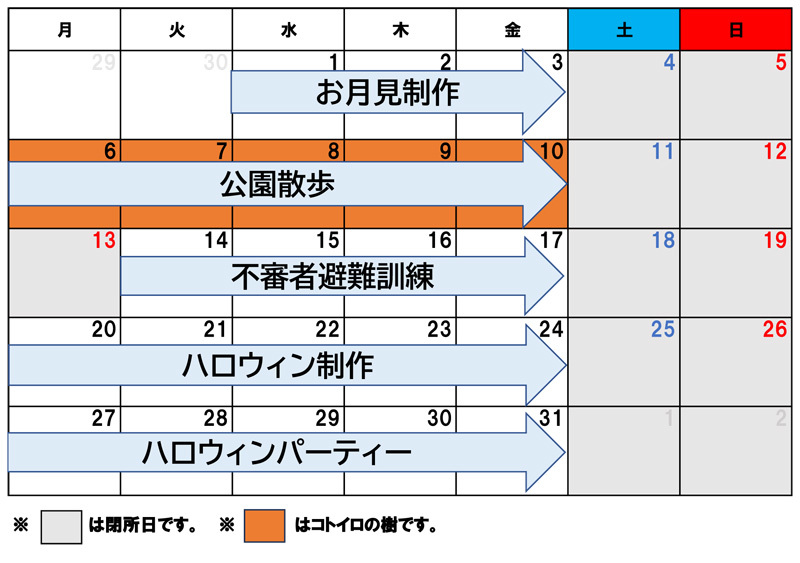 こといろルーム(小学生)の10月のカリキュラム