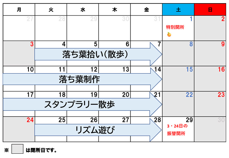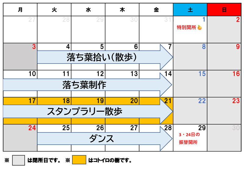 こといろルーム(小学生)の11月のカリキュラム